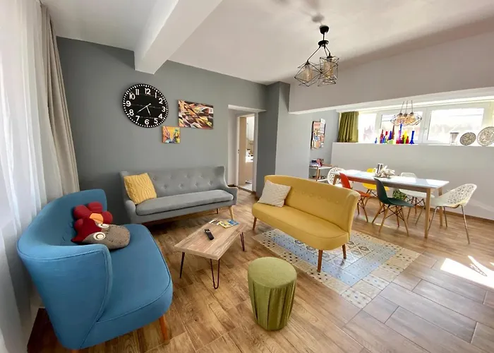 Dominic Apartment Unirii Square Timișoara o powierzchni 100 m² położony jest w dzielnicy Old City oraz oferuje taras z widokiem ogród. Timișoara's Botanical Park i Centrum handlowe Iulius Mall Timişoara znajdują się odpowiednio w odległości tylko 550 m i tylko 1 km od tego apartamentu.